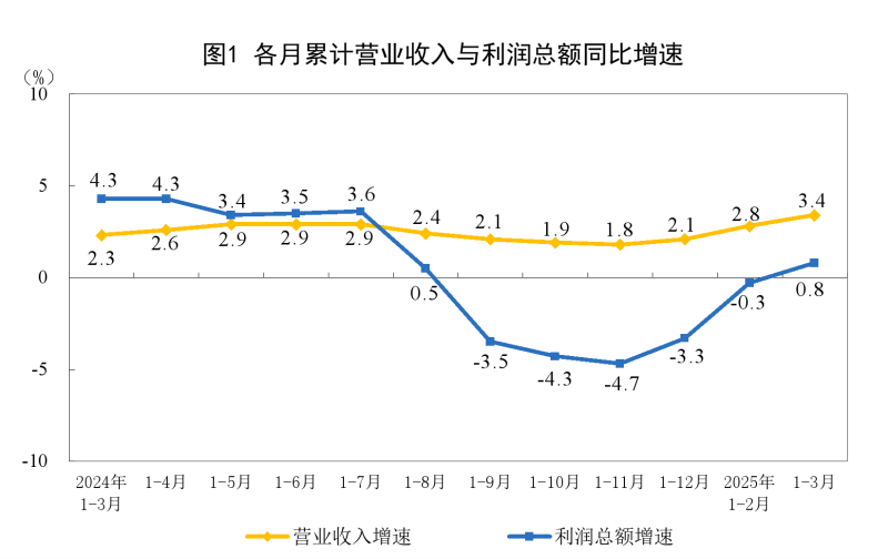 近日,国家统计局发布2025年1—3月份工业企业利润数据及解读,全国规模以上工业企业实现利润总额15093.6亿元,同比增长0.8%。