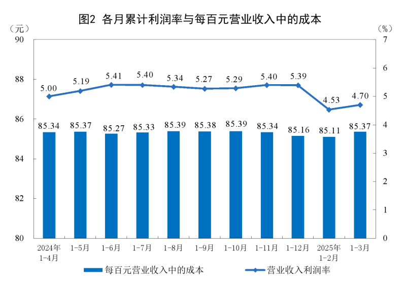 工业企业利润由降转增。一季度,全国规模以上工业企业利润由上年全年同比下降3.3%转为增长0.8%,扭转了自上年三季度以来企业累计利润持续下降的态势。3月份,规模以上工业企业利润由1—2月份下降0.3%转为增长2.6%,企业当月利润有所改善。